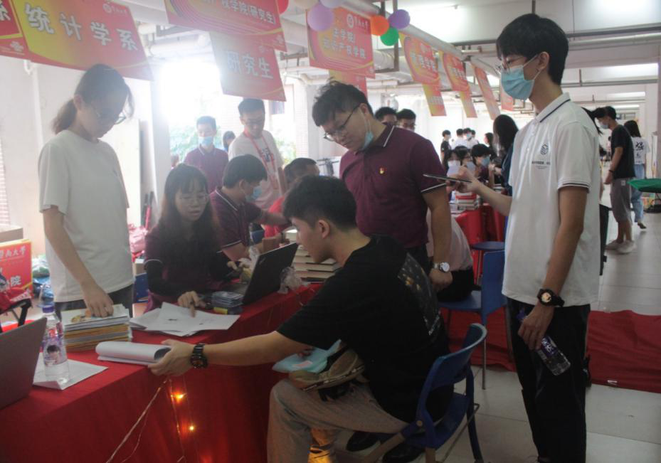 经济统计学专业的刘胤贝同学是beat365英国官方网站第一位报到的本科生,她表示:“初来暨南园,独具特色的校园建筑让自己耳目一新,学长学姐也非常热情,希望自己在这四年里能够不辜负青春,在学好专业的同时多读书充实自己,提升个人技能。”李姝是税收学专业的新生,来自新疆喀什莎车县,她在经历了四个小时的飞机晚点后终于来到学校报到,虽然路途遥远辛苦,过程坎坷,但进入学校一路上感受到老师和学长学姐们的热情,觉得非常开心,也非常憧憬精彩纷呈的大学生活。来自梅州的新生林宇涛由于腿伤未愈,需要使用拐杖行走,学院老师得知这一情况后,提前安排好三位联系学长与该生进行对接,帮忙搬运行李和办理报到手续,宿舍同学也主动把下铺的床位让给他,以方便他的生活。虽然无法参加新生训练营的武术训练,但林宇涛仍然对新生训练营充满了期待,希望在老师和学长学姐的帮助下开启美好的大学生活。在学院迎新工作人员的指引下,萌新们完成了一系列报到程序,现场秩序井然。