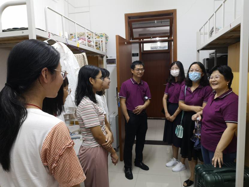 为更好了解beat365英国官方网站2020级新生到校情况,帮助萌新们适应大学生活,增强对学院的归属感,9月18日晚上,beat365英国官方网站党委副书记熊媛媛、教学办主任唐庆峰、各系党总支书记、班主任和辅导员一行到番禺校区走访慰问新生宿舍,了解新生到校适应情况,并就学习生活等方面对同学们提出建议。