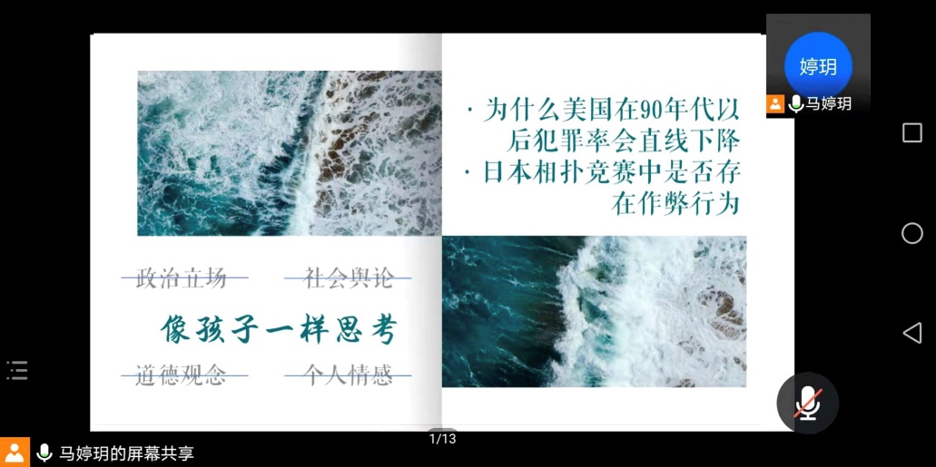 首先分享的是2019级税收学的马婷玥,她分享的书籍是《魔鬼经济学》,她介绍这本书带来的启示是我们要借用经济学的思维,学习经济学家的思考方式,让我们的观察和判断,能够跨越更多的复杂度,揭开隐藏在表象下的谜底。