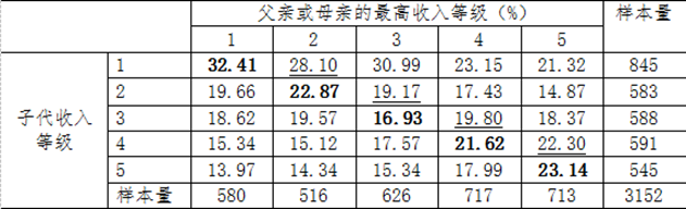 表1 代际收入等级转换矩阵