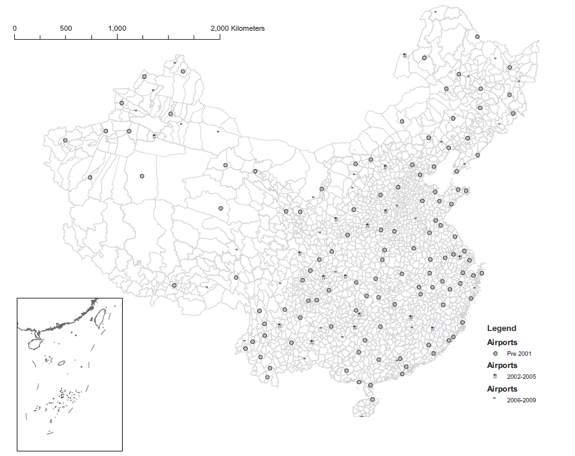 图为中国机场建设空间分布图