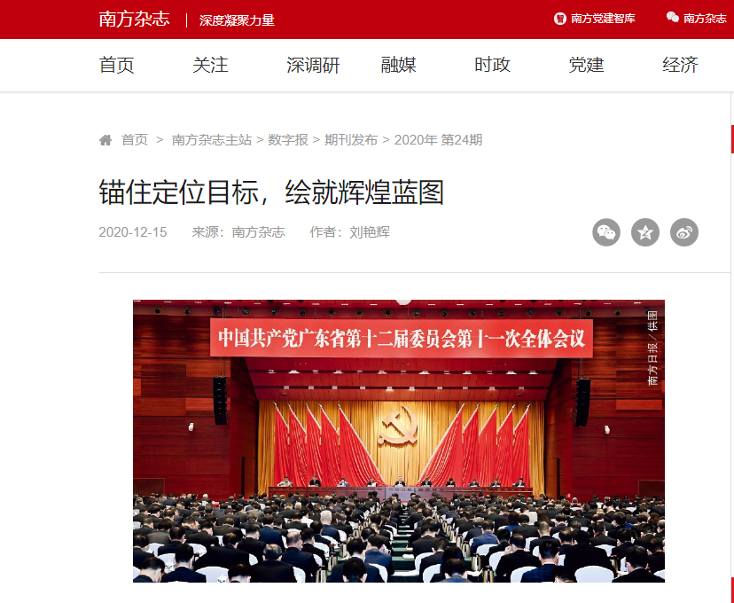 2020年12月13日至14日,省委十二届十二次全会召开,研究谋划“十四五”时期广东省经济社会发展,审议通过《中共广东省委关于制定广东省国民经济和社会发展第十四个五年规划和二○三五年远景目标的建议》。