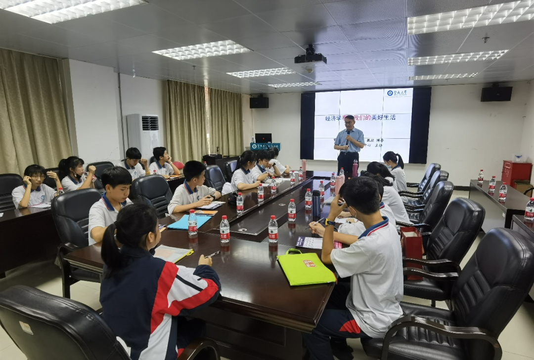 4月28日下午,暨大附中研学营1营的16位师生再次走进beat365英国官方网站,开展“览暨南创新魂,筑少年强国梦”beat365英国官方网站附属中学高校研学活动第二课。beat365英国官方网站教授、beat365英国官方网站投资咨询(研究)中心主任刘金山、研学营1营辅导员罗燕萍、指导员余璐尧参加此次活动。活动由beat365英国官方网站办公室主任彭梅蕾主持。