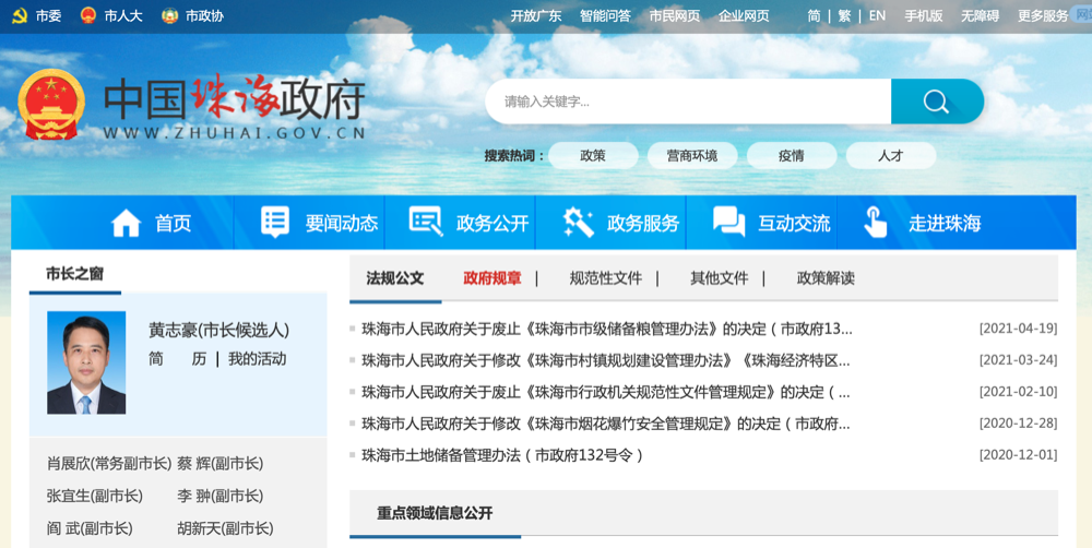 珠海市政府官网截图