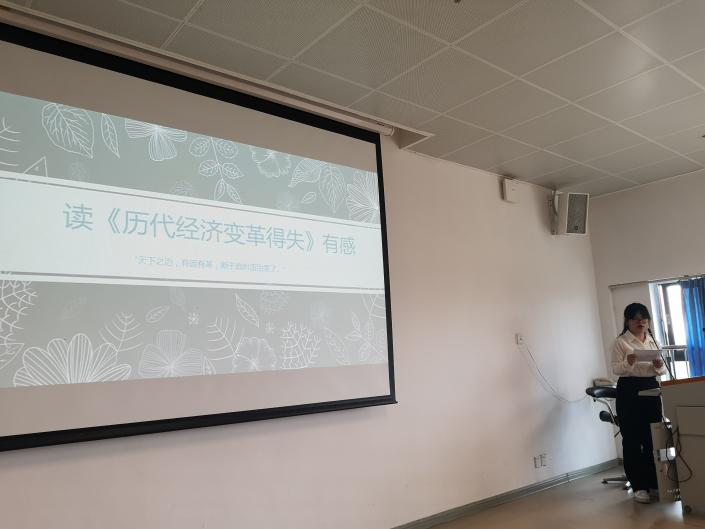 随后,9名决赛选手通过PPT展示或视频的方式,分享了他们阅读的主要内容、阅读心得与收获。钱松琦分享了《富爸爸穷爸爸》一书,阐述了“财富是支撑一个人生存多长时间的能力,即如果我今天停止工作,我还能活多久。我们所拥有的财富就是资产所能带来的现金流和负债会带走的现金流的差值,如果差值是正数,那么这就意味着我们是富有的”这一观点。孙业超介绍了阅读《经营与会计》一书的体会:这本书时刻在诠释着这位老人几十年的经营哲学——化繁为简才能找出真谛。在读这本语言朴实而直接的书时,让我陷入思考的往往是作者在实践的岁月中所凝结出的经营智慧。谢哲碧介绍了《历代经济变革得失》一书是由吴晓波先生撰写的一部以时间为轴向读者讲述历代中国重要经济变革的书籍,作者不仅介绍了历代中国曾有哪些经济措施,也分析了各项经济变革措施利弊与影响。正所谓以史为鉴,通过阅读此书,我们可以从古代各项经济变革、古人的各项经济措施中得到解决现代经济问题的启示。其他同学介绍了《统计学的世界》《价值》《伟大的博弈》等书,展现了他们良好的阅读能力和学习能力,通过丰富的内容展示和生动的讲解互动,为在场师生留下了深刻的印象。