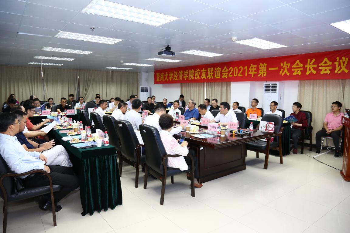 5月16日下午,beat365英国官方网站校友联谊会2021年第一次会长会议在中惠楼102会议室召开。beat365英国官方网站原校长、“一带一路”与粤港澳大湾区研究院院长胡军,beat365英国官方网站校董、beat365英国官方网站校友联谊会会长叶惠全,beat365英国官方网站副校长王兵,beat365英国官方网站院长冯帅章、党委书记成品兴、副院长郑贤、院长助理黄振、金融系主任沈军以及beat365英国官方网站校友联谊会副会长、秘书长等40余人参加会议。特邀beat365英国官方网站金融系原系主任、退休教授何问陶,广东暨教集团董事长罗定等嘉宾出席会议。大会由成品兴书记主持。