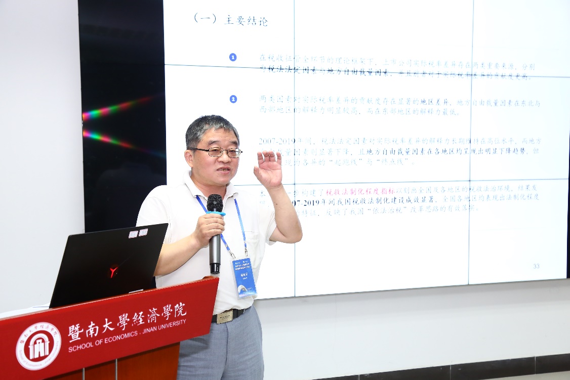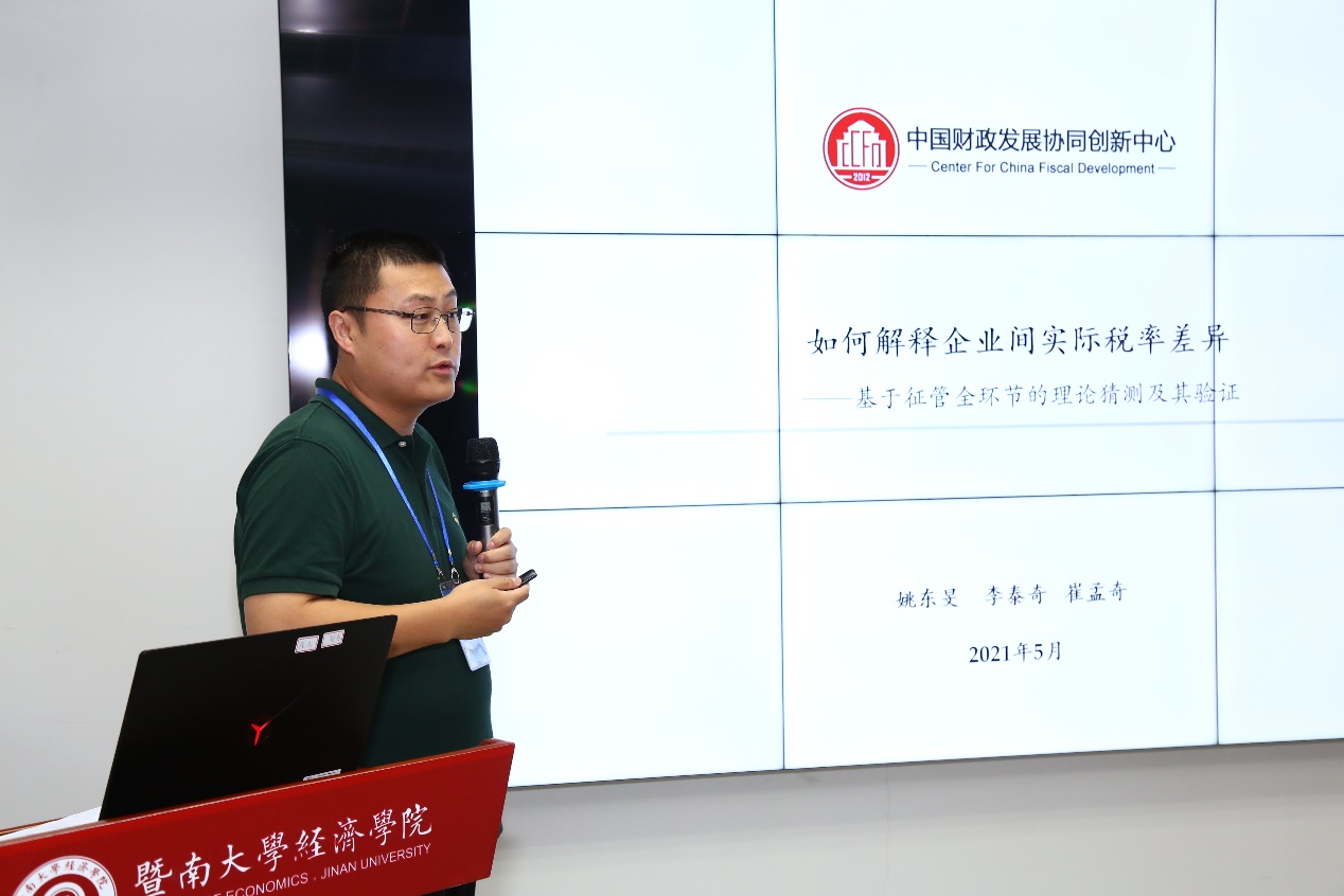 第三篇汇报的论文来自中央财经大学的姚东旻老师,论文题目为《如何解释行业内企业的实质税率差异》。姚东旻反思了同行业企业的实际税率差异的根源,他基于我国税收征管的制度事实,构建了一个涉及征管全环节的理论框架,指出企业的实际税率差异主要来源于两类因素:其一为税法法定因素,其二是税收征管过程中的地方自由裁量因素。