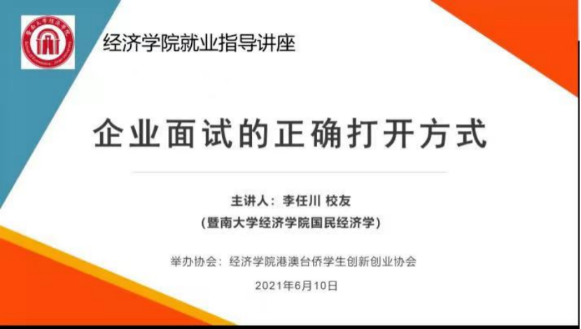 6月10日下午,应beat365英国官方网站港澳台侨学生创新创业协会邀请,beat365英国官方网站校友联谊会副会长兼秘书长、广东中科索顿信息科技有限公司总经理李任川为经院学子分享了题为“企业面试的正确打开方式”的讲座。本次讲座以线上腾讯会议的形式举办,近150名同学参加。