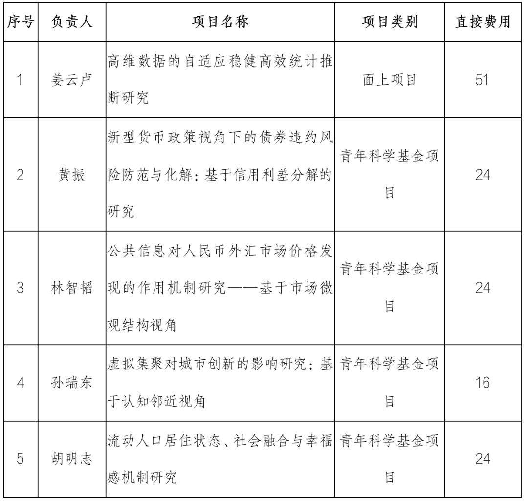 获资助项目清单: