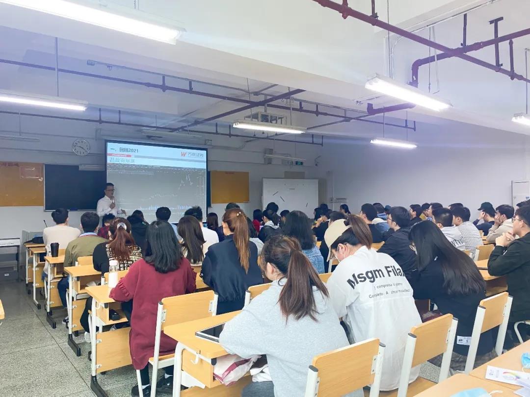 同时,黄松龙分享了金融证券从业心得与经验,从经济金融类专业就业方向、证券公司分类、部门职能、工作内容以及求职者能力五个方面进行了讲解,并针对具体的求职问题提出建设。通过此次经验分享,同学们对如何分析股票、选取股票与参与股市有了进一步的了解,对求职的整体思路与目标有了更加清晰的认知,纷纷表示受益匪浅。