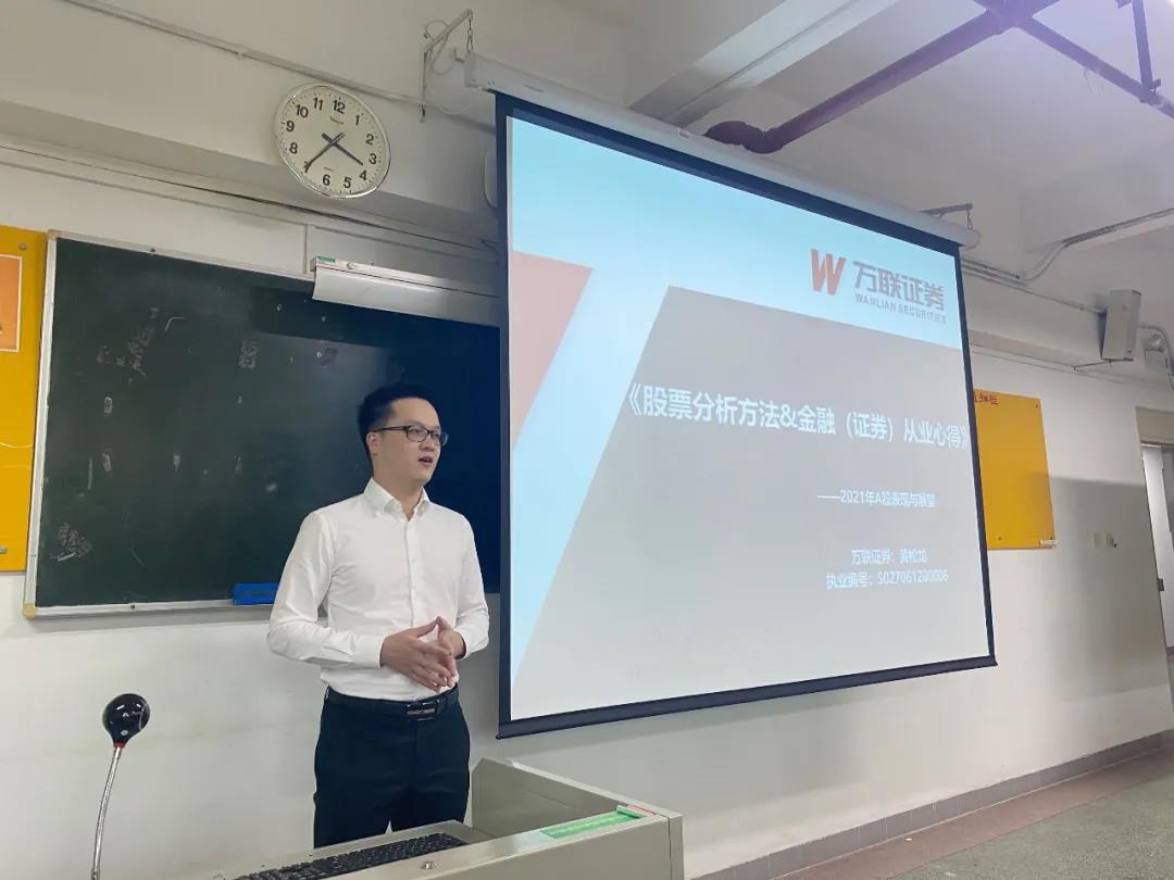 10月22日下午,beat365英国官方网站校友联谊会副秘书长、万联证券投资顾问黄松龙做客“暨南经院校友讲堂”,带来一场题为“股票分析方法 & 金融(证券)从业心得”的精彩讲座。讲座由学院研究生辅导员孙红敏主持,近百位师生参加。