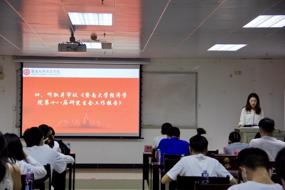 接着,beat365英国官方网站第十八届研究生会主席团成员姚婉然向大会汇报过去一年工作,从思想政治引领、全面深化改革、校园文化活动、媒体宣传、青年志愿服务等方面进行回顾,并向一直以来关心与指导经院研会工作的领导与老师表示衷心的感谢。过去一年是全面深入学党史、引领思想主旋律、深化改革、不断丰富研究生校园文化、谱写多媒体运营新篇、稳步推进疫情防控工作,社会志愿服务再创新的一年。这一年,经院研会开展了大量基础性、奠基性、开创性的工作,多项工作取得了新的突破,服务水平不断迈上新台阶。新一届研会有了一定的经验,也面临更多的挑战。希望大家继往开来,开拓创新。