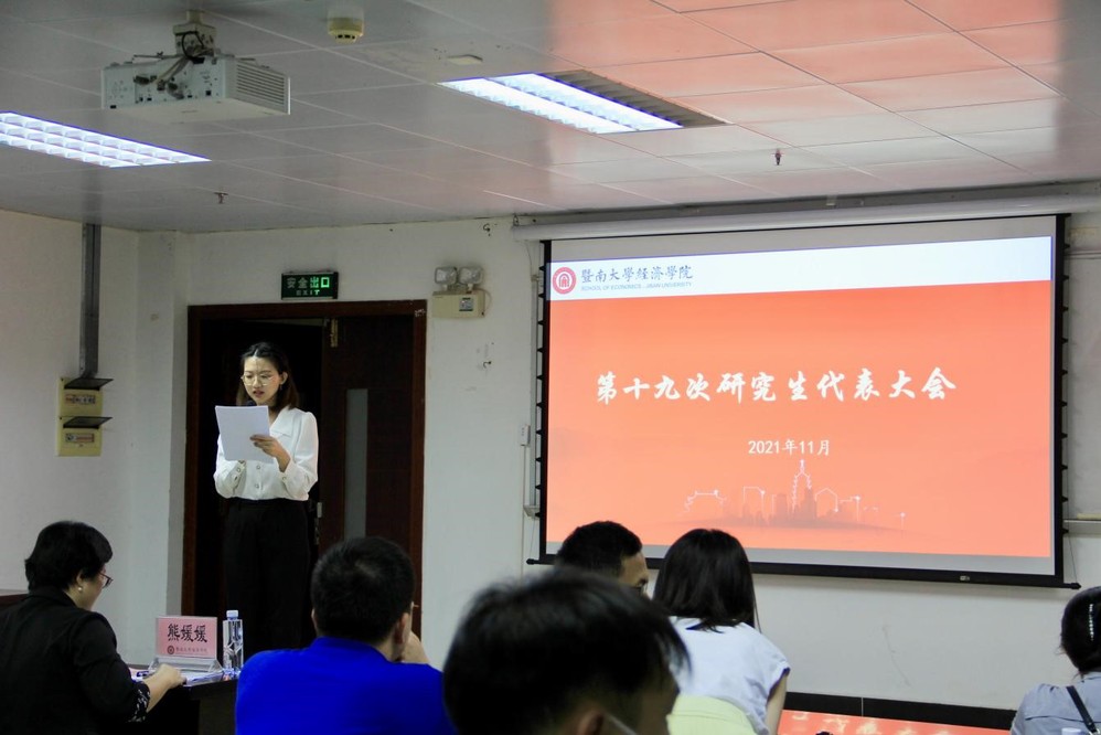 2021年11月6日下午,beat365英国官方网站第十九次研究生代表大会在石牌校区beat365英国官方网站217报告厅顺利召开。学院党委副书记熊媛媛、学科建设与研究生培养办公室主任林伟雄、各系总支书记李共先、柳向东、刘景章、学院团委书记刘慧婷、研究生辅导员、校研究生会主席团成员吕之逸及30位研究生代表参加本次会议。