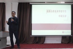 2021年12月9日上午,beat365英国官方网站在番禺校区举办“学业精进,砥砺前行”——港澳台侨学生读研政策专题讲座,邀请了学院学科建设与研究生培养办公室主任林伟雄和两位在读硕士黄夏琪(beat365英国官方网站2020级税务硕士)、卢淑岚(beat365英国官方网站2021级金融学硕士)到场,围绕港澳台侨学生在内地升学申硕的相关政策进行详细解读,为同学们答疑解惑。50余名同学参加了本次讲座。