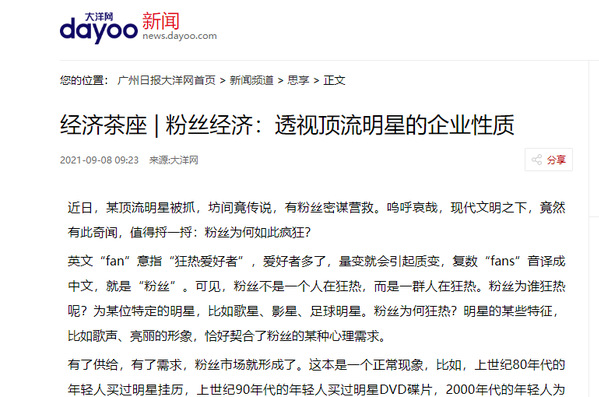 更为重要的是,互联网的金钱表达,形式与数额清晰可见。有人打赏多了,就会产生示范效应,就会引起他人(尤其年少的粉丝)的冲动打赏。这样,粉丝的互联网金钱表达,成为一种狂欢,成为一种狂热的粉丝金钱竞赛。这把互联网的递增效应发挥到了极致。事情发展到这一步,明星(尤其顶流明星)就可以充分发挥垄断的市场力量了。