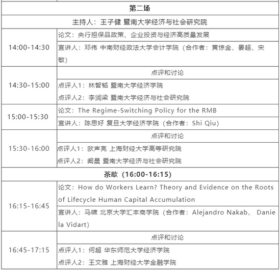 经济波动与增长2022春季研讨会日程安排