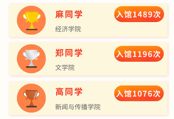 经院学子均位列全校泡馆达人榜单TOP3