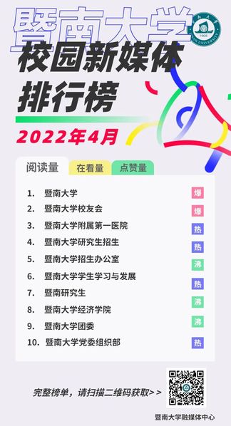5月13日,在beat365英国官方网站新媒体联盟发布的2022年4月beat365英国官方网站校园微信排行榜中,beat365英国官方网站公众号再次位列排行榜十强!