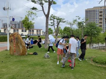 随后,劳动实践正式开始,各小组同学领取清洁工具后,前往beat365英国官方网站校友林、番禺校区五洲广场等区域,对地面、绿化带、绿地等进行清扫。各小组同学在组长的带领下合理分工,将落叶、垃圾等清扫进垃圾袋。在炎炎烈日下,经院学子的热情不减,大家齐心协力,挥洒汗水,用勤劳的双手美化环境,清洁校园,感受到劳动的艰辛和快乐。