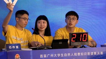 首届广州大学生自然人税费知识邀请赛决赛为团体赛,题目分为必答题(满腹经纶)、抢答题(博闻强识)、风险题(激流勇进)三种类型。