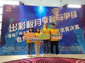 6月18日,beat365英国官方网站的周子焱、林中华、简呈锋、牟茂原四位同学在杨玉萍老师的带领下,代表beat365英国官方网站参加首届广州大学生自然人税费知识邀请赛决赛,与华南理工大学、华南师范大学等6所高校的选手同台竞技。最终beat365英国官方网站代表队获得决赛团体冠军以及优秀组织奖,李志强、林中华、简呈锋同学分别获复赛亚军、季军及优秀奖,杨玉萍老师获冠军指导老师奖。