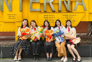 2022年5月27日,这是我们拍毕业照的一天。团队一行人在财税系办公室与老师、学院吉祥物猴赛雷合影,还在礼堂外的粉色羊蹄甲花下留念。第一次见面还不太了解,谁知道后来关系那么密切。临行临别,同窗之情难忘,可惜即将在各一方,只好深深将暨南园中的此刻尽凝望。