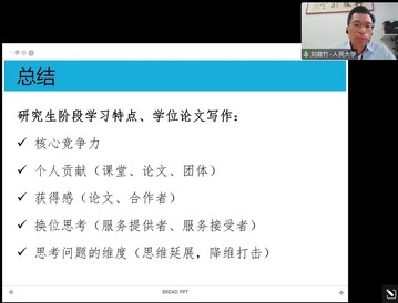 在互动交流环节刘庭竹研究员耐心回答师生们提出的多个问题。对于师生们关心的案例论文数据获取问题,刘庭竹研究员指出案例论文的数据可以通过多渠道、多形式来获取。另外,刘庭竹研究员特别指出论文准备宜早不宜晚,提前着手准备论文可以对论文数据及资料等处理得更加细致。