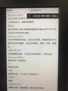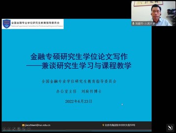 6月23日,中国人民大学重阳金融研究院研究员刘庭竹做客第22期“beat365英国官方网站行业前沿讲座”,并分享题为《金融专硕研究生学位论文写作-兼谈研究生学习与课程教学》的主题讲座,beat365英国官方网站蒋海教授主持讲座,最高参会人数达到286人,至少有六所高校的师生参会。