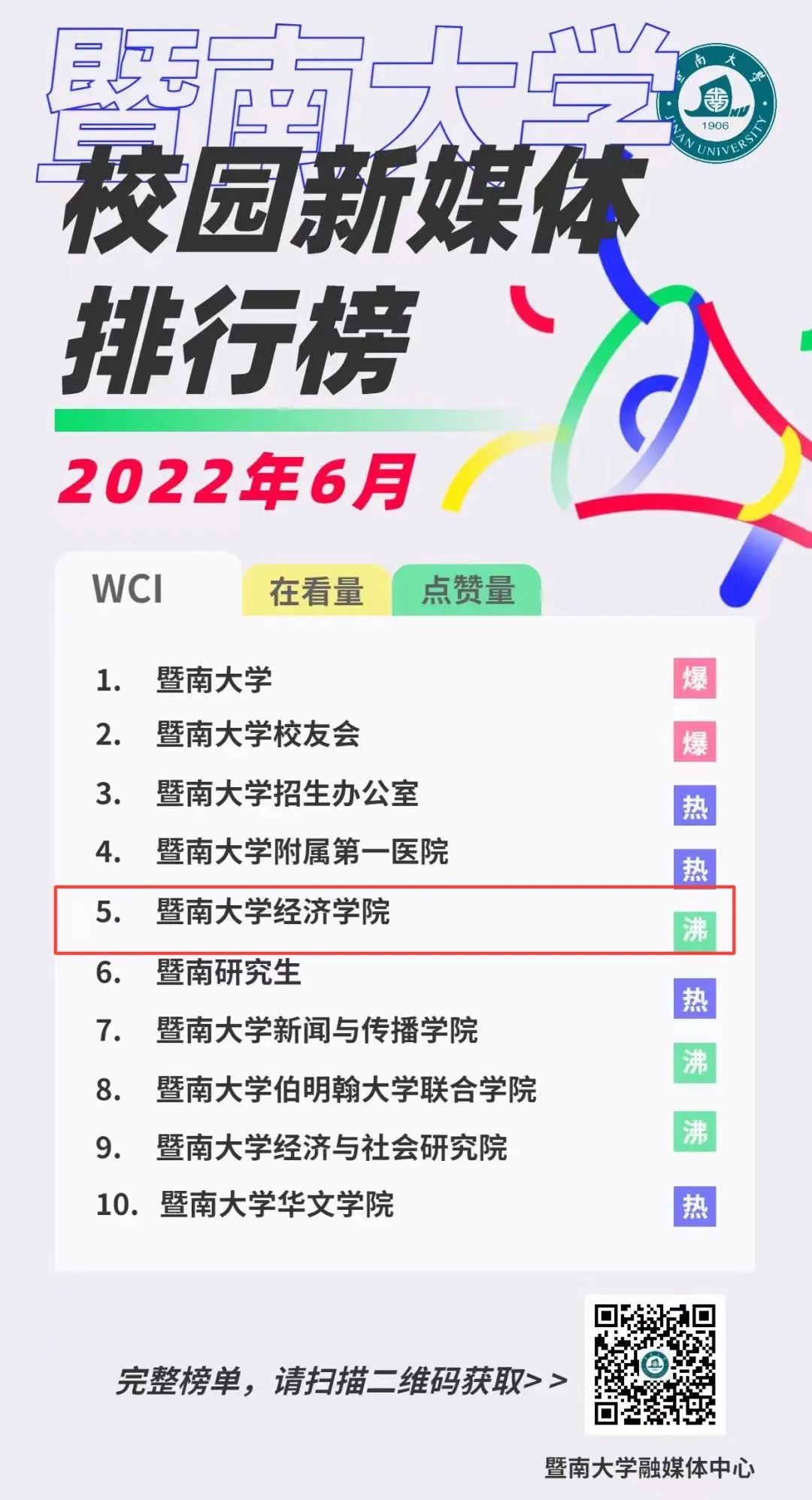 7月22日,在beat365英国官方网站新媒体联盟发布的2022年5、6月校园新媒体排行榜中,beat365英国官方网站公众号再次上榜,位居排行榜前六强!