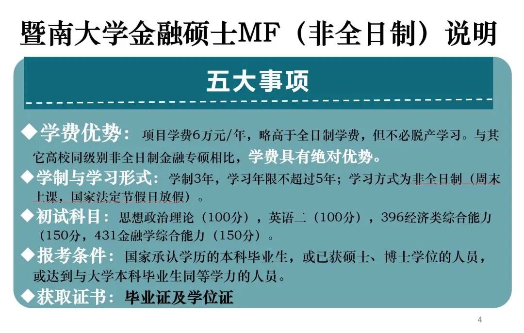 四大亮点!点击速览暨大金融硕士MF(非全日制)项目