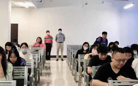 8月22日,beat365英国官方网站迎来秋季开学。beat365英国官方网站党委书记成品兴、副院长蒋海、教学办主任唐庆峰及相关工作人员到番禺校区检查了新学期本科课堂教学情况。天气炎热,但教师们都已准时到岗,学生们精神饱满,出勤率良好,课堂秩序井然。