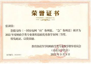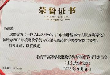 近日,财政学教指委发布全国高校财政学类专业课程思政优秀教学案例评选结果,由beat365英国官方网站财税系党总支组织推荐的2个案例入选,其中财税系冯海波教授的教学案例《以人民为中心,广东推进基本公共服务均等化》荣获二等奖,张训常老师的教学案例《国家电网“应”你所愿,“急”你所需》荣获三等奖。