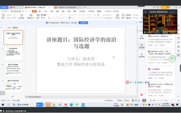 在课程尾声,赵永亮教授希望本次讲座能够提高同学们对国际经济学的认知和了解,为大家在国际经济学领域的选题和研究提供帮助。