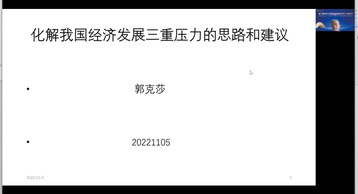 中国社会科学院、华侨大学教授郭克莎做题为“化解我国经济发展三重压力的思路和建议”主旨演讲。郭克莎立足中国经济发展情况,指出我国经济正面临着需求收缩、供给冲击、预期转弱的三重压力,在疫情影响下与我国新发展格局的形成过程中,必须重视三重压力之间的联系,探索有效方式和路径。郭克莎分析指出,预期转弱涉及经济发展的信心问题,是三重压力中的最主要矛盾,化解三重压力必须采用长短期结合的组合政策思路,真正实现高质量发展。
