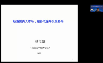 北京大学beat365英国官方网站教授杨汝岱做题为“畅通国内大市场,服务新发展格局”主旨演讲。杨汝岱立足全球视角,对中国改革开放以来不同阶段的经济发展经验进行梳理,总结了我国要素市场改革和一体化所产生的发展优势,对畅通我国国内大循环、服务新发展格局进行了深入阐释,并为未来的市场格局和发展优势提出了新的构建思路。