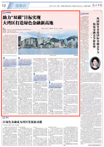 鄂志寰:充分发挥香港绿色金融的排头兵作用。香港作为国际金融中心,连通境内外的绿色和可持续的资金。大湾区内地城市可利用香港作为绿色筹资平台,积极参与绿色债券、绿色贷款、绿色基金等金融服务。香港相对成熟的绿色产品与服务还可进一步辐射至深圳、广州等内地城市,稳步提升当地绿色金融服务水平,共同推动区内产业绿色转型。