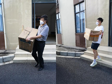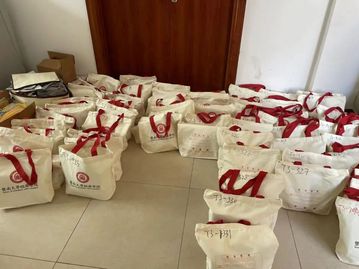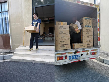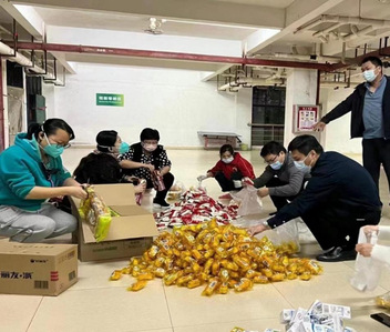 学院师生为同学们分装、搬运防疫物资