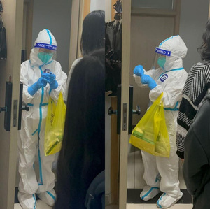 学院领导老师前往非封控楼栋关心同学并派送防疫物资