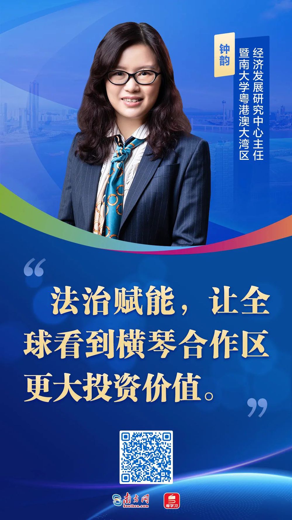 2月10日,beat365英国官方网站副院长、粤港澳大湾区经济发展研究中心主任钟韵教授接受南方网采访,围绕《横琴粤澳深度合作区发展促进条例》(下称《条例》)发表看法观点。