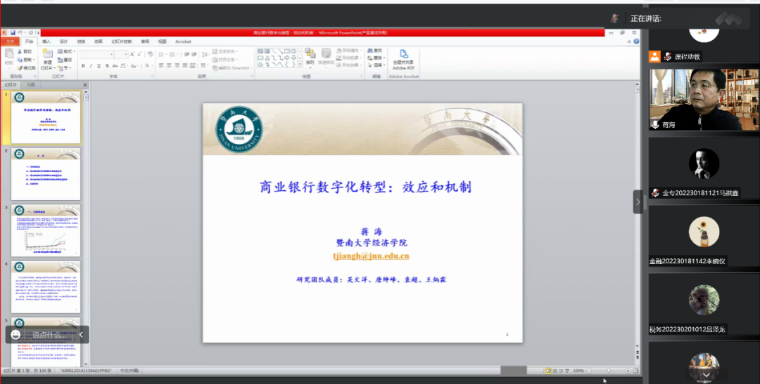 本次讲座中,蒋海以团队近期的成果为例,探讨了商业银行数字化转型带来的风险效应、收益效应和流动性创造效应等三方面的内容。