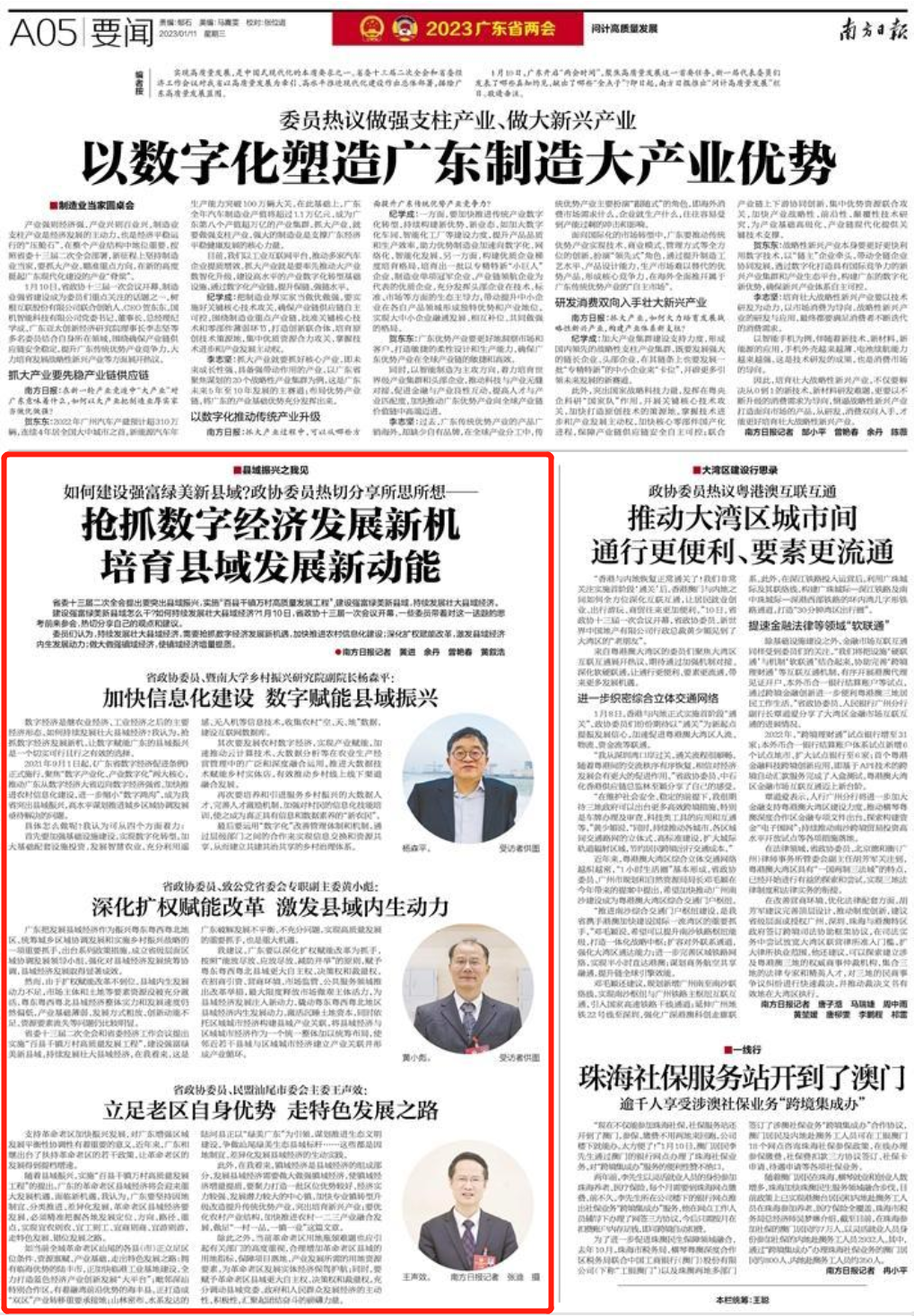 1月11日,杨森平作为第十三届政协广东省委会委员接受《南方日报》采访,就“建设强富绿美新县域怎么干?”“如何持续发展壮大县域经济?”等话题分享自己的观点和建议。