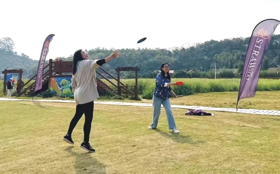 在草帽农场草坪,老师们进行了飞盘活动,直接将欢乐气氛拉向高潮。接盘、传盘、跑位、跳跃,现场气氛活跃、融洽。在奔跑中挥洒汗水,在接盘中考验默契。老师们纷纷表示感受到了跳跃与躲避带来的快乐和刺激,是一次一次酣畅淋漓的新鲜体验。
