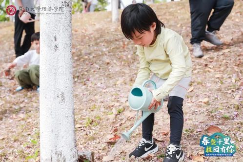 “植”等你来,“浇”个朋友。孩子们兴奋地提着浇水壶,盛满了水,浇灌着镜湖旁的绿植。
