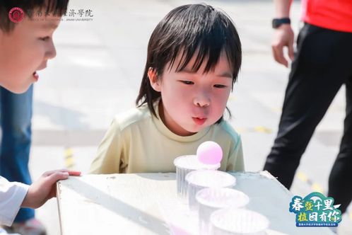 徜徉其中,身心愉悦。大家来到了位于图书馆南边的最后一处集卡点。这里有着三个创意小游戏:运输球球、吹乒乓球、DIY乒乓球+笔墨下的树叶。当淘气的乒乓球终于被吹向了最后一个杯子——顺利过关时,现场的工作人员和志愿者们都笑脸盈盈地鼓起了掌,孩子们更是欢呼雀跃。但孩子们似乎并不仅仅满足于“通关”,他们尽兴地向集卡点的每一个关卡发起挑战。贴心的志愿者们为校友和家属们准备了水、香蕉和糖果,大家在补给站边玩边聊。