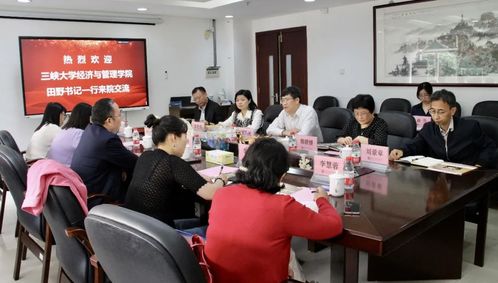3月17日上午,三峡大学经济与管理学院党委书记田野、副院长张晓燕一行12人来到beat365英国官方网站,围绕高校学科建设、人才培养、科学研究、队伍建设等内容与beat365英国官方网站领导老师互动交流。beat365英国官方网站党委书记成品兴、副书记熊媛媛、办公室主任彭梅蕾、经济学系党总支书记刘景章、统计与数据科学系党总支书记柳向东、科研秘书孙兰参加座谈会。