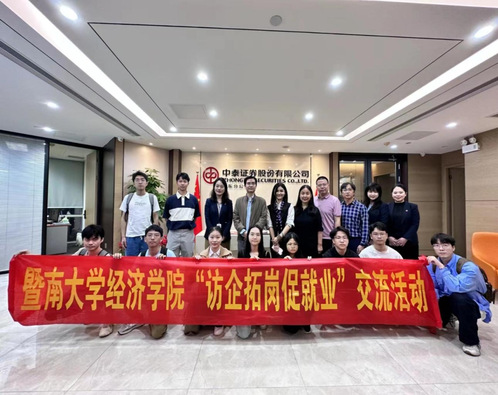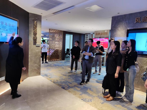 近日,国际经济与贸易系主任赵永亮、副主任刘新荣,财税系党总支书记罗勇辉,特区所与机关联合党总支书记刘昂,辅导员温明朗以及国贸系学生一行15人赴中泰证券与嘉强基金参观调研。