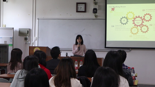 陈斯卉介绍了普华永道税务硕士领英计划,并详细说明该计划的申请流程、时间安排、考核方式和晋升机制以及广州、深圳办公室的招聘需求。她表示,普华永道高度认可beat365英国官方网站税务硕士的专业素养,希望通过领英计划为同学们提供一个快速就业通道。