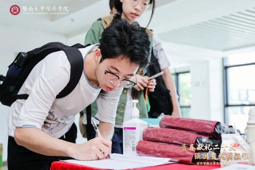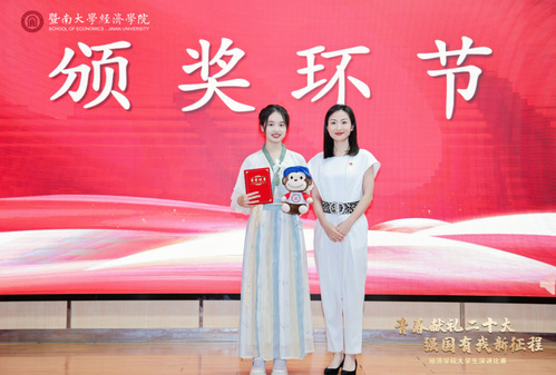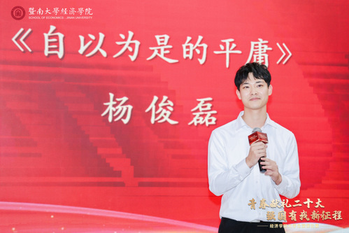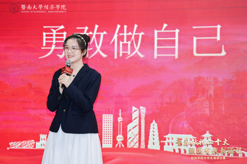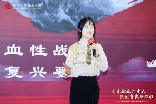 邓雯妍寄语经院学子:一是发扬五四精神,坚定理想信念,将个人发展融入中华民族伟大复兴的中国梦;二是珍惜宝贵光阴,练就过硬本领,为将来走上社会、投身国家建设做好学识修养、能力才干等多方面的储备;三是牢记殷殷嘱托,勇担时代使命,牢记“把中华优秀传统文化传播到五洲四海”的光荣使命,为中国式现代化贡献更多的暨南力量。