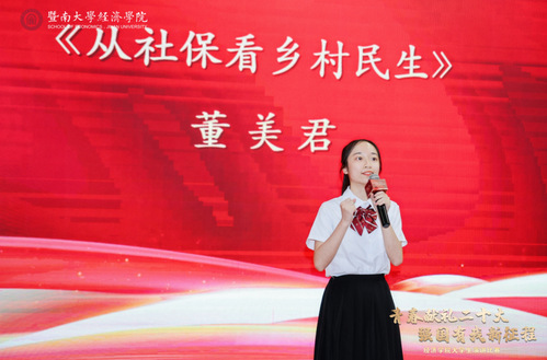 2020级税收学本科生董美君讲述了乡村社会调研的亲身经历,呼吁青年学子走出象牙塔,深入乡村,扎根基层,成为农村百姓的沟通者,国家政策的宣扬者,成为社会主义事业薪火相传的中坚力量。