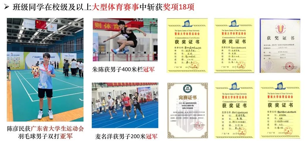 全面发展,统筹兼顾。班级同学参加校内外各种竞赛活动获奖达51人次,积极参加包括beat365英国官方网站迎新晚会、beat365英国官方网站田径运动、第十一届广东省大学生运动会、beat365英国官方网站团支部风采大赛等在内的各项校内外文体活动,三年多来各科奖学金及荣誉称号覆盖率达60%以上。